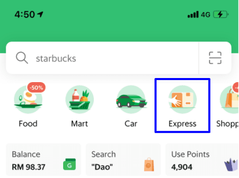 - Buka EXPRESS dalam aplikasi Grab