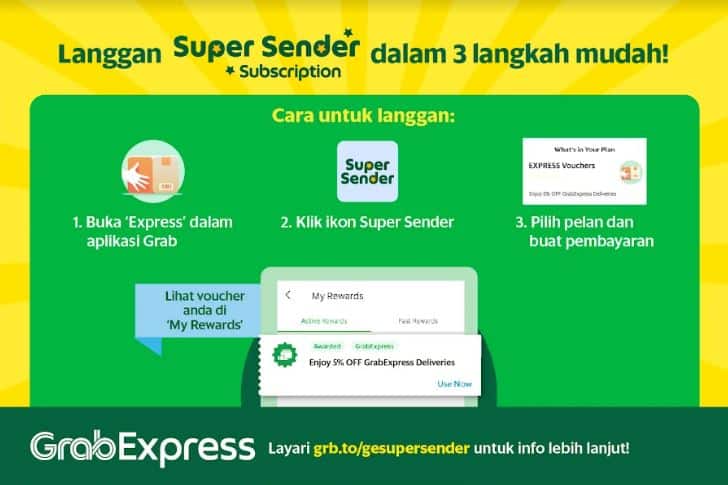Maklumat lanjut mengenai Super Sender boleh layari GrabExpress-SuperSender