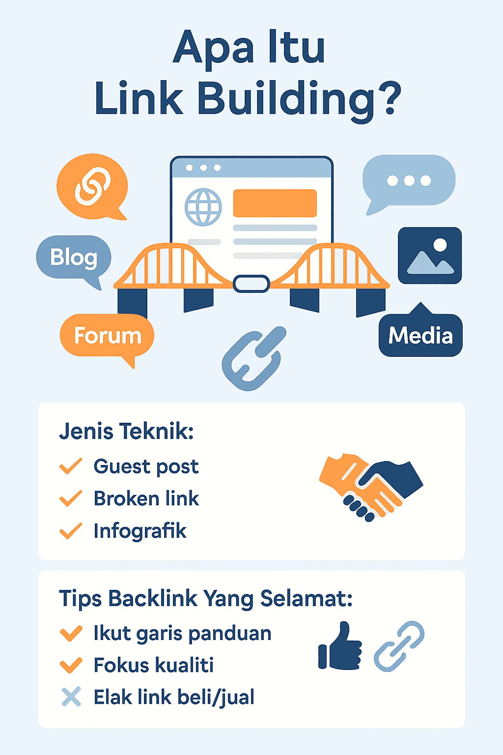 βKalau SEO ibarat bina rumah atas tanah Google, maka link building ialah macam bina jambatan supaya orang senang datang ke rumah kita.β