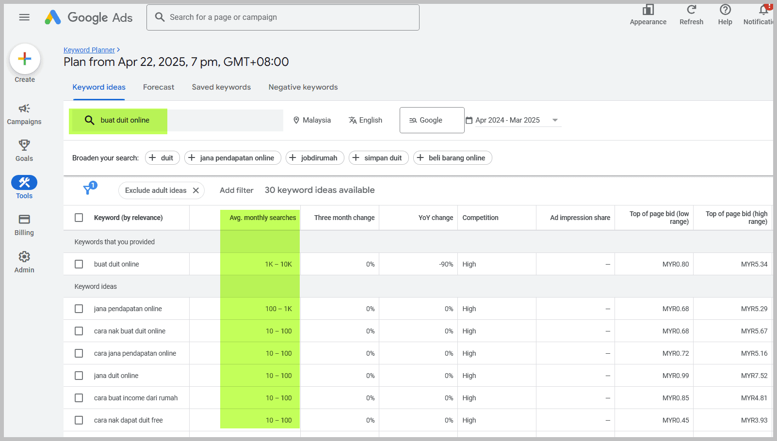 ✅ Google Ads Keyword Planner (Percuma 100%)